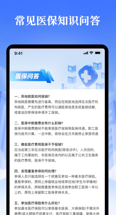2、快速帮助用户解决社保医保使用中的疑问,成为用户管理社保医保的实用助手。
