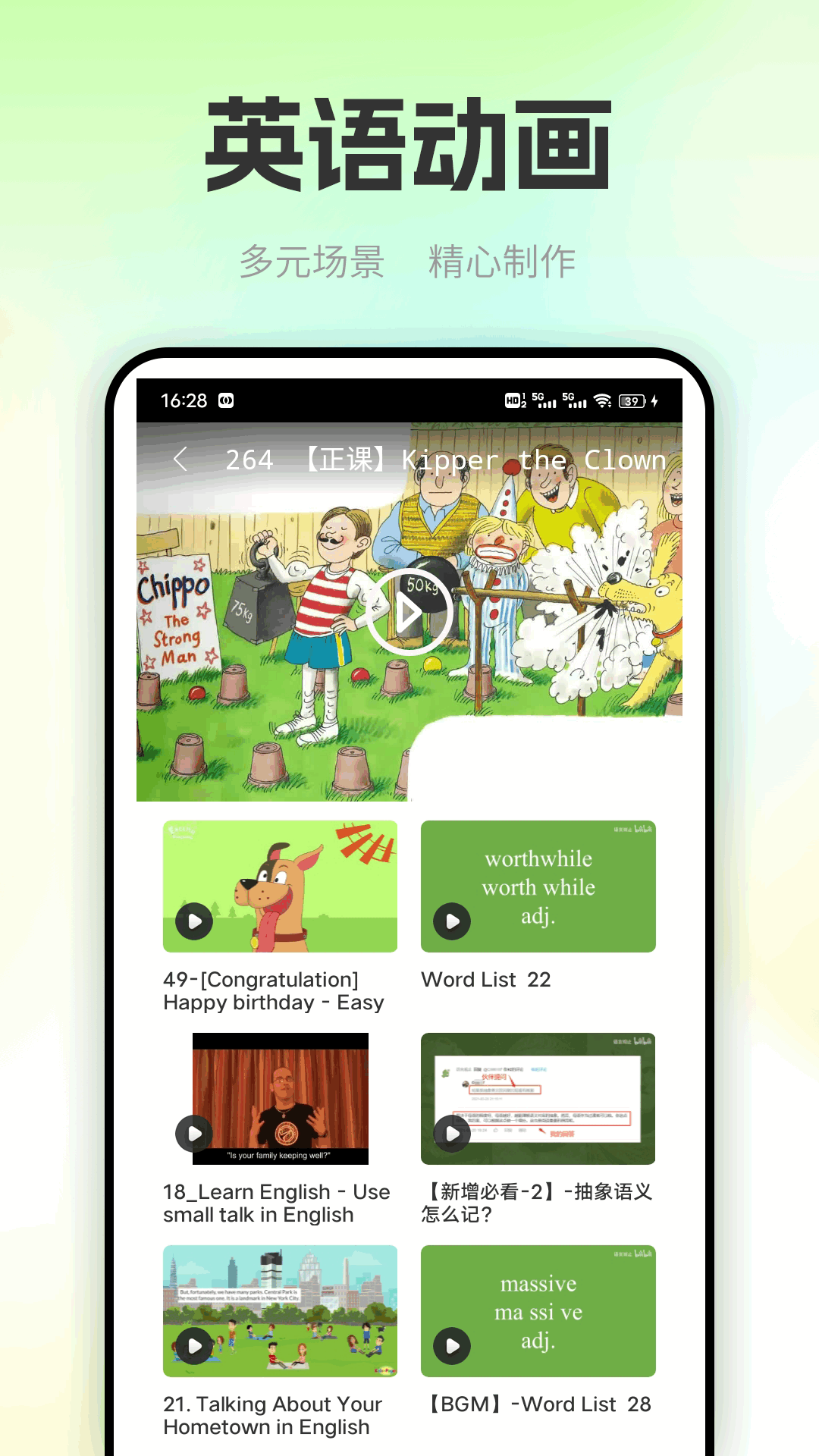 3、提供从基础词汇到高阶语法,从日常对话到商务英语等各个领域的学习素材。