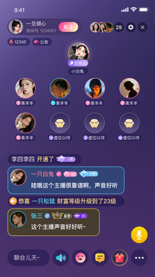 1、提供了多种语音互动场景,包括一对一私密聊天、多人语音房间、主题语音活动等。