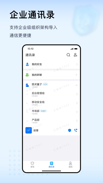 图灵卫士app是一款专为企业打造的通讯软件,利用先进的量子技术,致力于为用户提供高安全性、高可靠性的通信体验。当前数据泄露和安全风险日益增加,APP通过多层次的安全机制,为企业的信息交流提供了强有力的保障。无论是即时通讯、文件传输还是群组讨论,用户的敏感信息都能得到有效保护,降低数据泄露的风险。