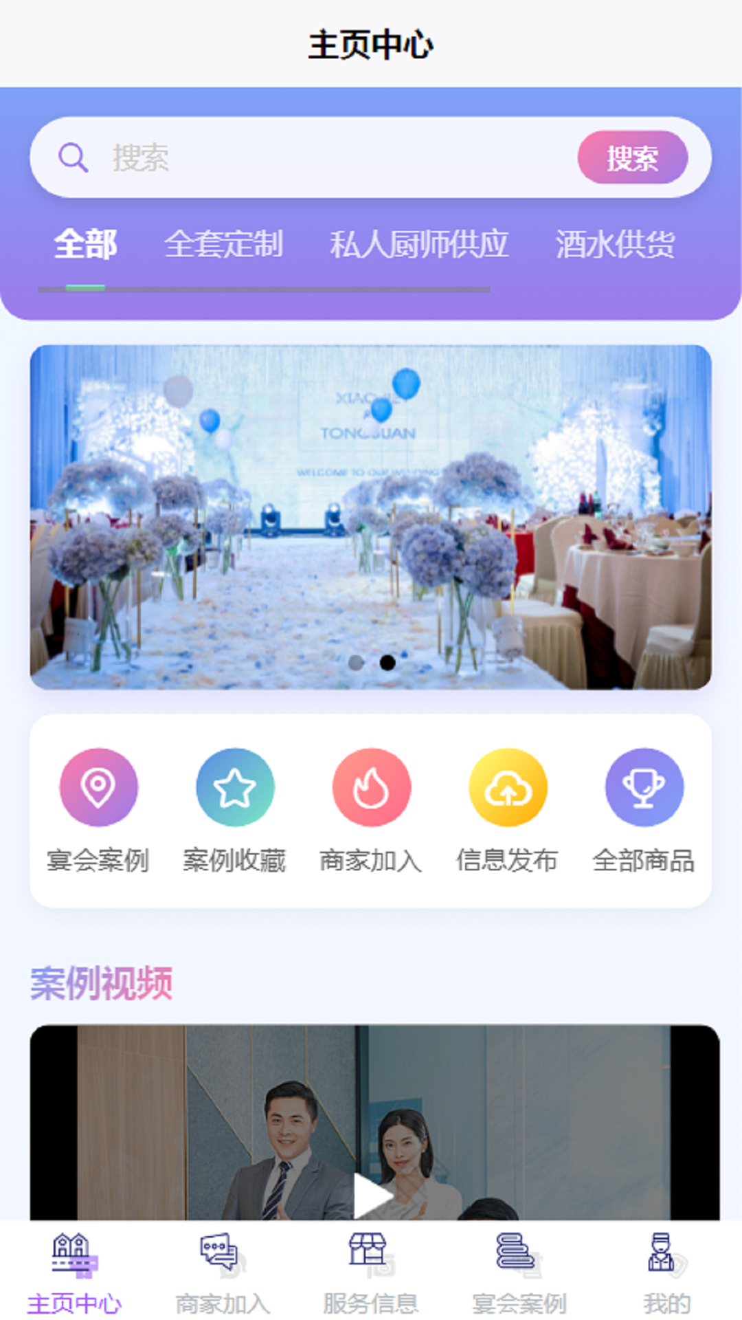 2、进入首页可以看到丰富的功能,详细的宴会案例都可以看到。