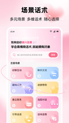 2、可以选择不同的恋爱场景,获取相关的话术,还可以搜索对话获得答复;