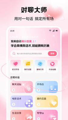 酷友i聊助手app是专为广大用户打造的情感助手,涵盖了丰富的聊天话术与恋爱技巧,向大家提供不同场景的聊天话术,让你随时可以高情商的表达自己。这款软件涵盖的功能很多,可以帮助大家在与人沟通的时候更好的表达自己的情感,还可以提供很多的开场白与文案,涵盖日常不同对话场景所需要的聊天话术,帮助恋爱中的人更好的交流情感。