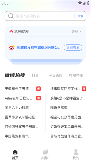 2、进入app就能搜索感兴趣的内容,也可以查看各个平台热搜的内容;