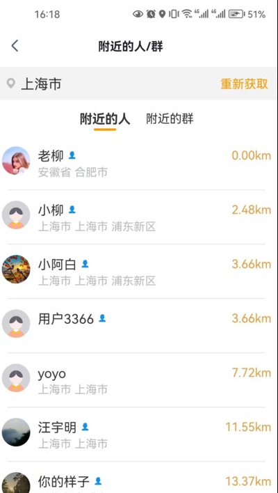 2、系统会自动获取你的实时位置,并精准筛选出同一社区或周边范围内的其他用户。