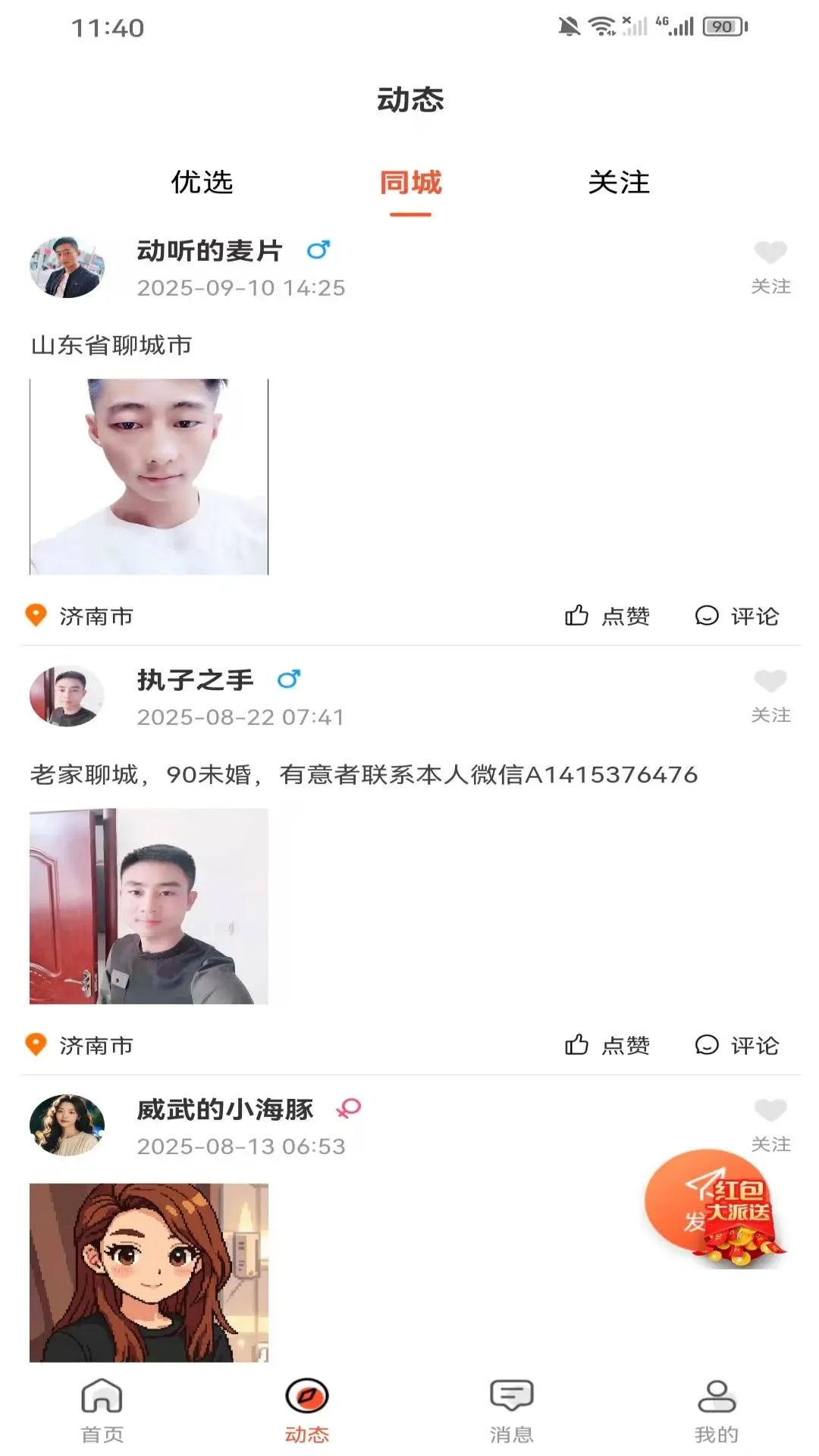 囍呗app根据用户的行为和反馈动态优化匹配结果,提高牵手成功率,在动态页面,用户可以发布自己的生活点滴等,也能浏览和互动他人动态,提供同城交友功能,让用户可以轻松结识身边的单身人士,增加真实互动机会,构建线上线下无缝衔接服务,从线上沟通到线下见面,全程为用户保驾护航,通过点赞评论等方式与其他用户互动,增强社区的活跃度和用户的参与感。