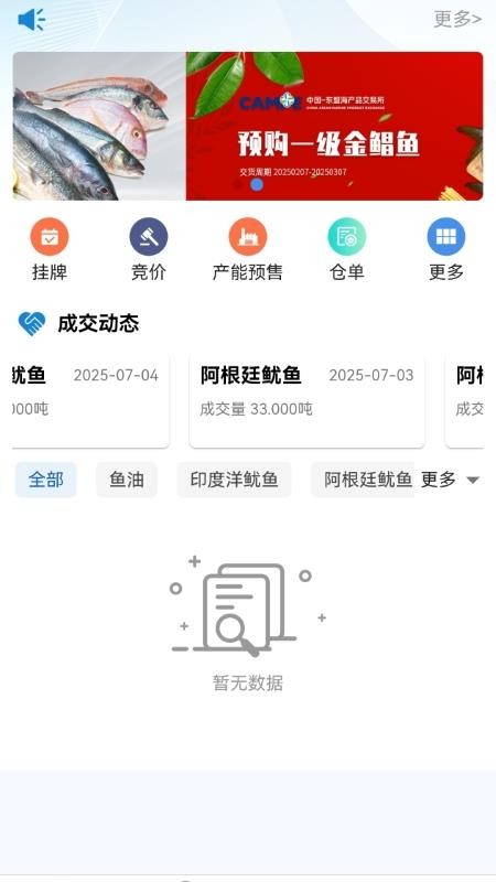 3、来带软件首页,可查看成交动态和各大海产品的售卖信息。