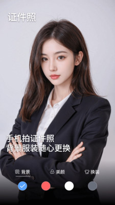 3、内置一寸、二寸等规格模板,自动裁剪尺寸,可换正装背景,证件照自由拍在家就能出片。