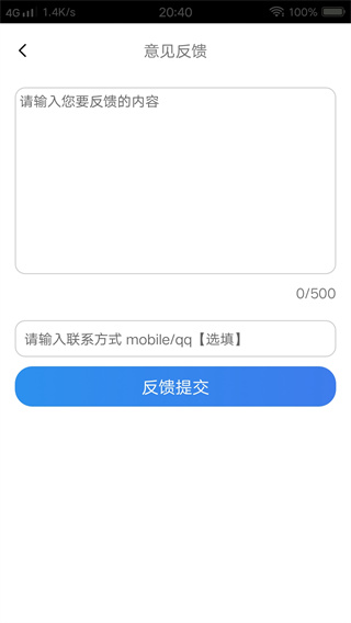 3、在我的板块中,点击意见反馈,将你宝贵的意见发送到平台中。