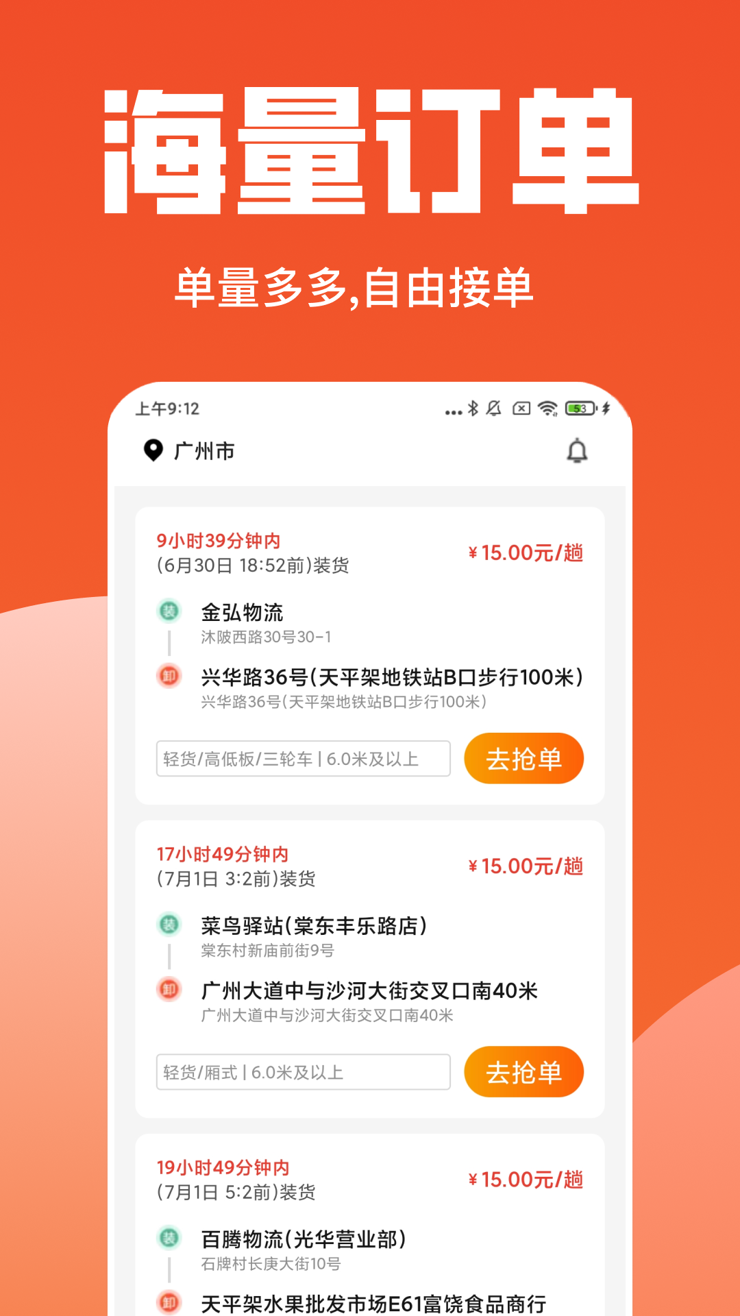 1、海量货源汇聚,覆盖全国,无论您身处何地,都能找到心仪的订单。