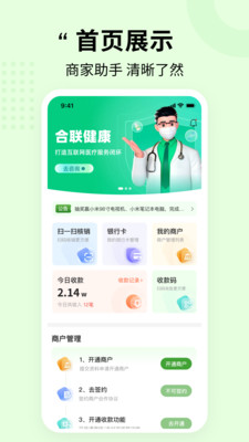合联健康app是一款商家智慧经营的革新伙伴,作为营销领域的璀璨新星,是商家迈向安全、便捷、智能化经营管理的得力助手,它专为实体门店、连锁企业、品牌及各行业量身打造,助力商家实现数字化门店与营销的全面升级,开启经营新纪元,通过详细的交易数据统计,商家可精准掌握经营状况,退款、提现功能灵活便捷,让资金流转无忧。