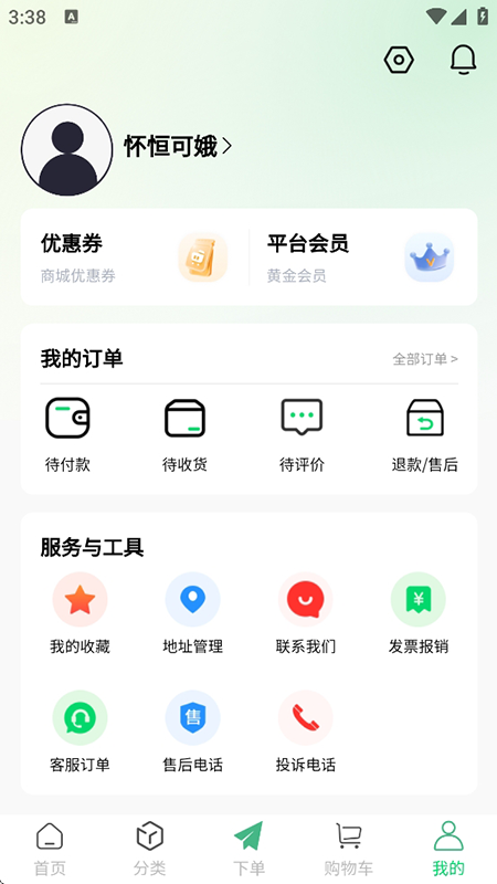 2、在下方工具栏点击分类,用户可以分类别进行查找下单。
