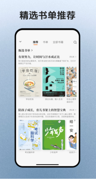 2、每周由专业编辑与智能联合推出主题书单,涵盖人文历史、经济管理等热点领域,支持按题材分类筛选与关键词搜索,一键直达目标书籍。