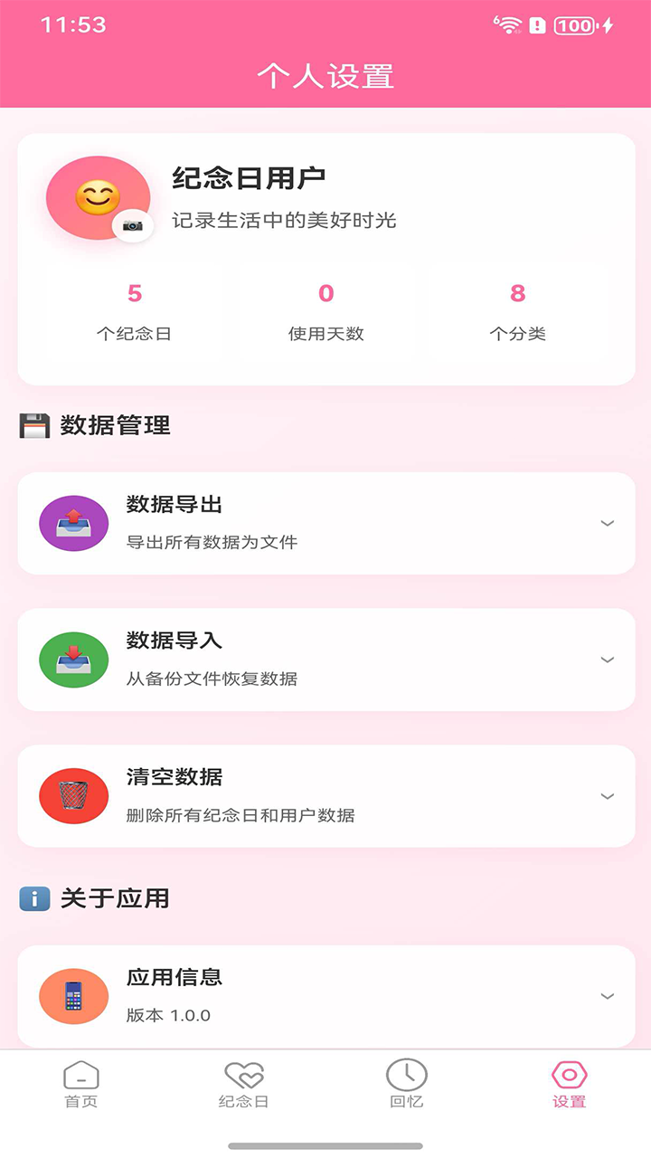 3、自动统计纪念日总数及累计时长,生成人生重要时刻数据看板,直观呈现时光轨迹。