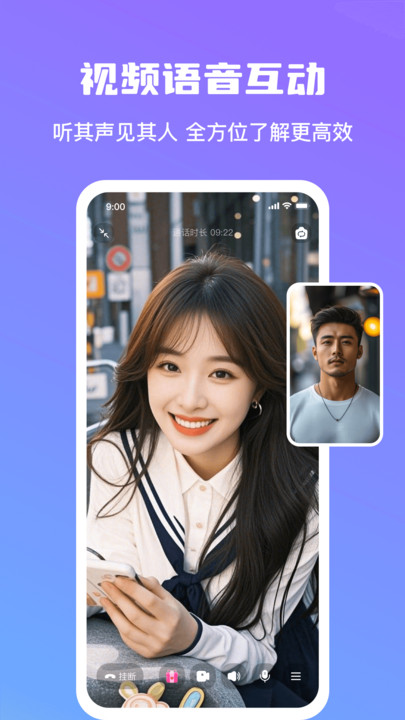 2、支持用户之间进行高质量的实时视频沟通,帮助破冰并增进彼此了解。