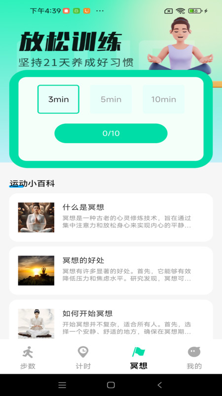 4、在冥想页面,自定义每日冥想时间,快速放松情绪。