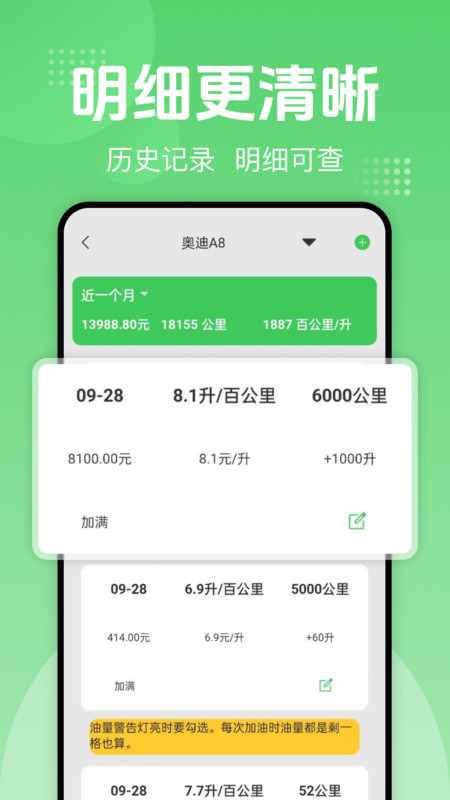 3、油耗分析引擎基于加油数据和里程信息,自动计算百公里油耗等关键指标,帮助用户掌握车辆燃油经济性变化。