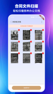 1、合同文件扫描时自动检测文档边界,去除杂乱背景,生成清晰的PDF格式电子合同,便于保存。