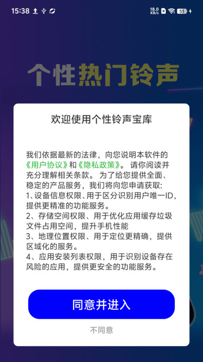 1、可以直接下载最新版本的软件,进入的时候需要先同意隐私权限。