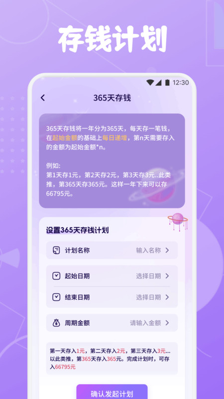 3、存钱计划支持定额储蓄、目标储蓄等多种自动化攒钱方案。