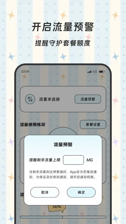 3、用户可设置流量上限,当流量接近或达到设定值时,系统自动提醒。