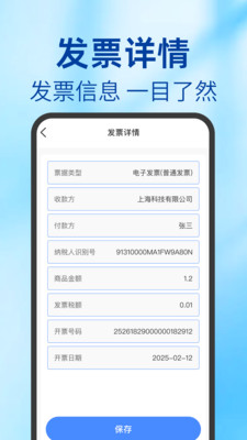 2、识别发票时自动校验信息完整性,若发现金额、日期等字段缺失,会提示补充,确保发票数据准确可用。