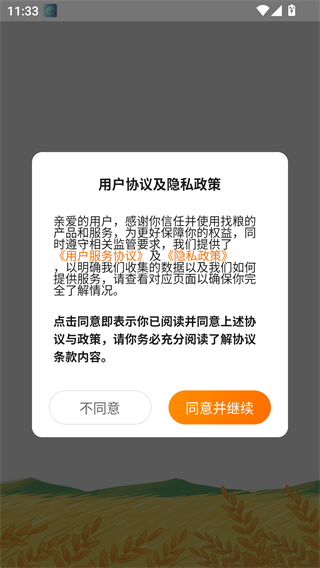 1、打开软件,阅读服务协议和隐私政策,点击同意并接受即可进入下一步。