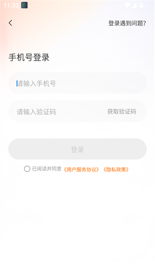 2、进入登录页面,输入手机号,获取验证码,点击登录进入到主界面。