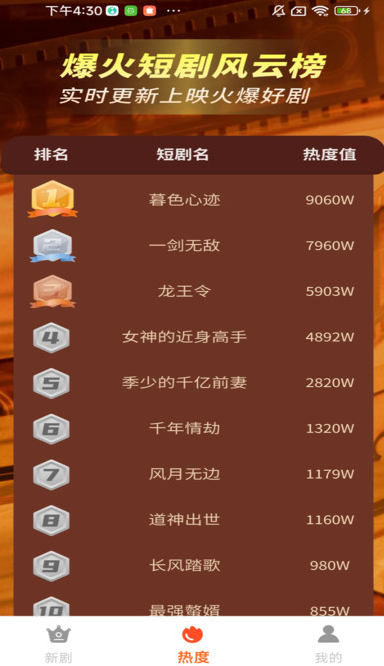 3、用户可以进入热剧排行榜,可以随时知晓当前有哪些好看的短剧。