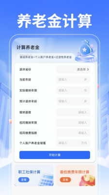 退休养老计算管家app是一款引领你迈向智慧退休生活的得力助手,巧妙融合了精准计算与全面规划,为用户精心打造了一个退休生活预演的舞台,无论是好奇自己何时能卸下职场重担,享受悠闲退休时光,还是渴望提前知晓退休后能领取多少养老金,亦或是想了解社保缴纳与公积金贷款的种种细节,都能为您揭晓答案,让你的退休规划变得更加从容。
