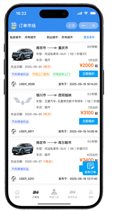 2、基于托运距离、车辆类型、服务类型等数据,快速生成托运价格预估。
