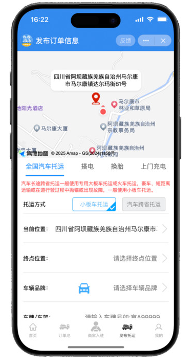 3、可快速在线输入汽车托运的起始位置与目的地,支持手动输入详细地址。