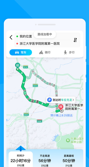 2、清晰标注当前位置与目的地之间的距离,根据选择的出行方式预估所需时长等。