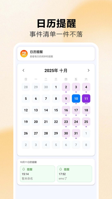 2、日历集成模块将待办事项与时间提醒深度融合,形成完整的时间管理体系。