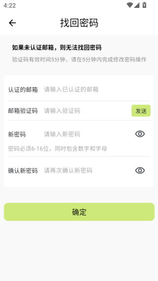 3、如果忘记密码,还可以找回,输入邮箱和验证码,即可设置新密码。
