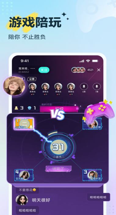3、涵盖语音K歌、桌游互动、话题派对等,可以让不同类型的用户都可以尽情玩。