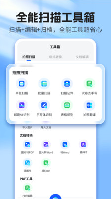 2、涵盖多种扫描识别功能,支持智能扫描、证件扫描、文字识别等;