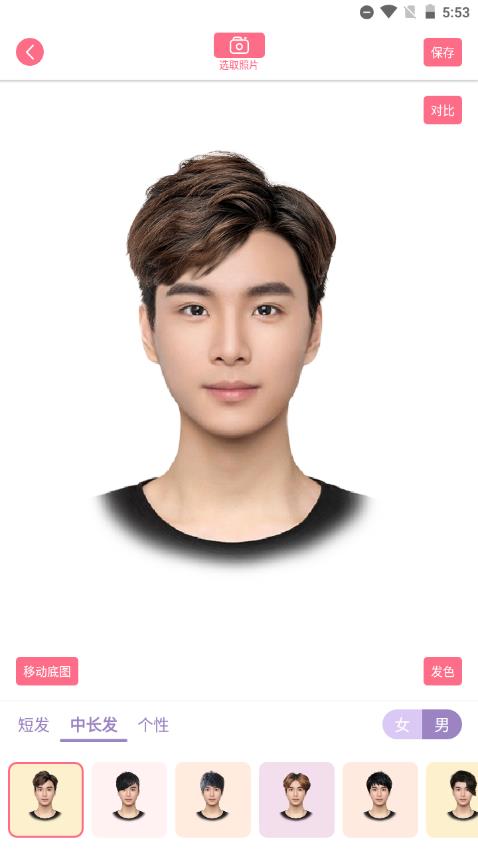 3、在男士页面中提供了短发、中长发和个性,选择你喜欢的类型进行体验。