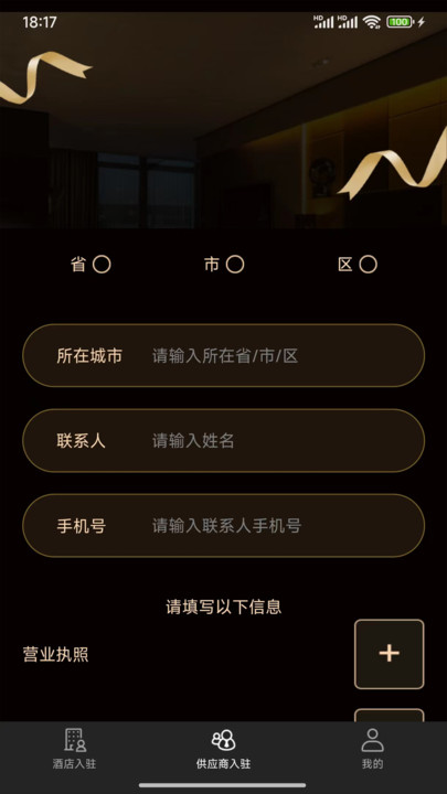 2、供应商入住,供应商方也可以用手机号+运营执照相关信息去注册登录。