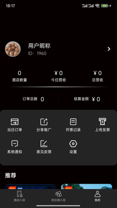 3、我的,个人中心功能,可以查看更多详细明细,包括酒店数量及应收。