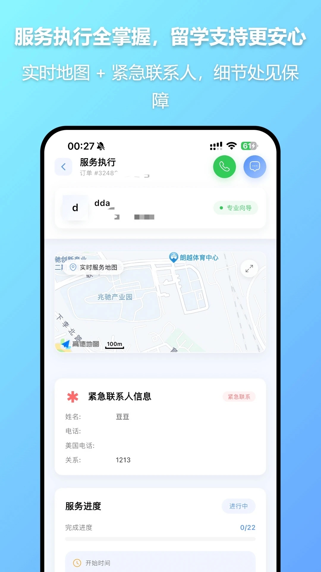 安啦到岸app支持家长与向导实时联系,平台保护隐私,确保沟通安全,每条打卡记录间隔均有人审核,确保服务过程完整,遇到紧急情况可保留现场录音与定位,平台立即介入,保障学生安全,由专业团队提供贴心服务,确保学生在陌生环境中也能感受到家的温暖,每项服务不少于6次打卡,确保服务过程的完整性和透明度,服务过程中的每一步都有详细的记录和反馈,让家长和学生对服务过程一目了然。