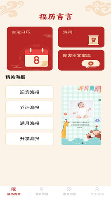 福喜同乐app是一款可以查询吉庆日子,方便大家进行活动安排计划和邀请的实用工具。通过这款软件更好挑选吉日,还能提供祝福贺词、邀请海报制作和活动管理等功能,一站式满足大家筹备吉庆活动的需求,满足人们在婚宴、乔迁、生日、开业等方面的使用需要。包含了很多的贺词和朋友圈文案,让大家更好的分享喜悦,还有很多的海报模版让大家使用。