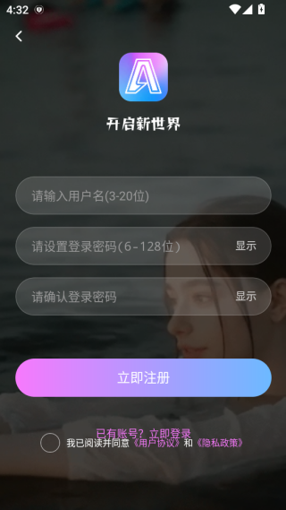 4、如果没有账号,还可以去注册,输入用户名,设置登录密码即可注册。