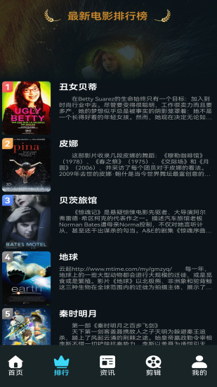 2、点击排行,最新电影排行榜展示,看看有没有你喜欢的影视。
