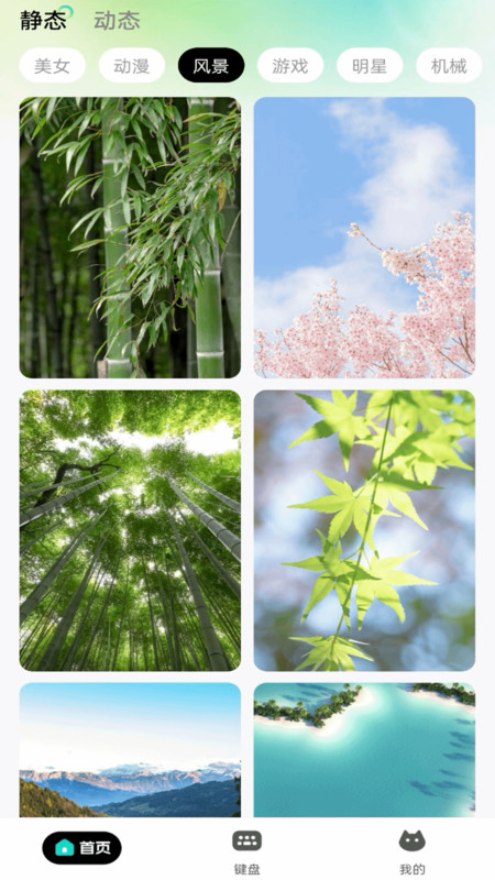 1、在首页,可以查看静态、动态壁纸,涵盖多个主题,自由选择。