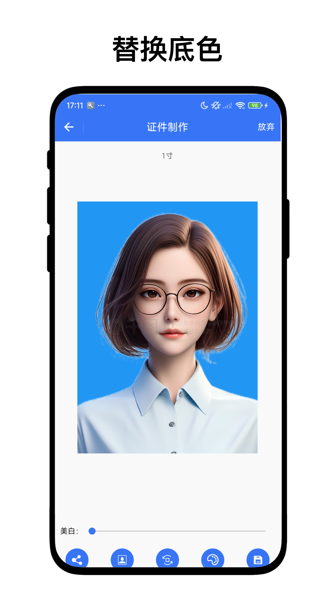 1、用户无需手动调整,即可一键将照片背景替换为蓝、红、白等标准底色。