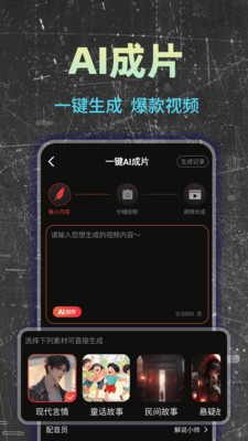 1、内置智能剪辑功能,能够根据用户的输入内容自动匹配合适的画面、音乐和特效。