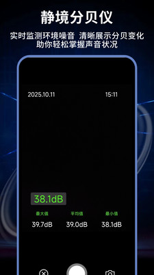 1、专业噪音测量工具,依托优化算法捕捉声音信号,实时转换为精准分贝值,满足多场景检测需求。