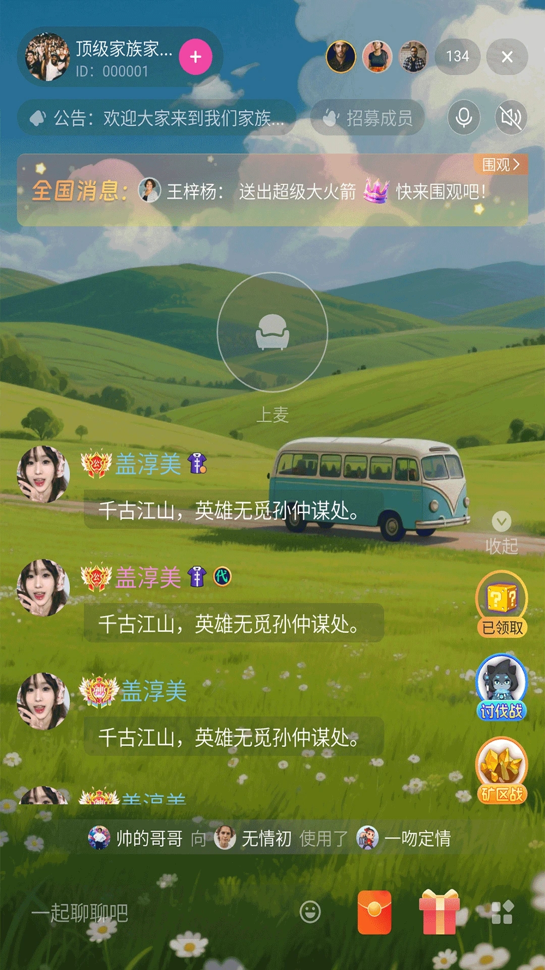 2、聊天室支持多人上麦语音交友,最多可容纳八位好友同时连麦。提供高清音质的语音通话,保证交流顺畅不掉线。