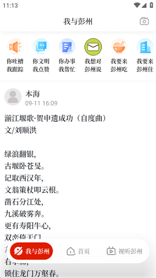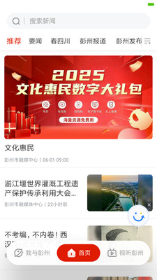 爱彭州app是一个地方性的新闻资讯服务平台,专为彭州地区的人们打造,大家可以通过这个平台轻松了解各类新闻资讯与身边的大小事。平台上涵盖了丰富的新闻版块和不同的栏目,用户可以根据自己的需要来选择相应的功能使用,提供丰富的新闻阅读与视听体验,不仅有图文资讯新闻,还有很多视频直播和广播内容,满足人们的多样化使用需求,还能带来很多便捷生活服务。